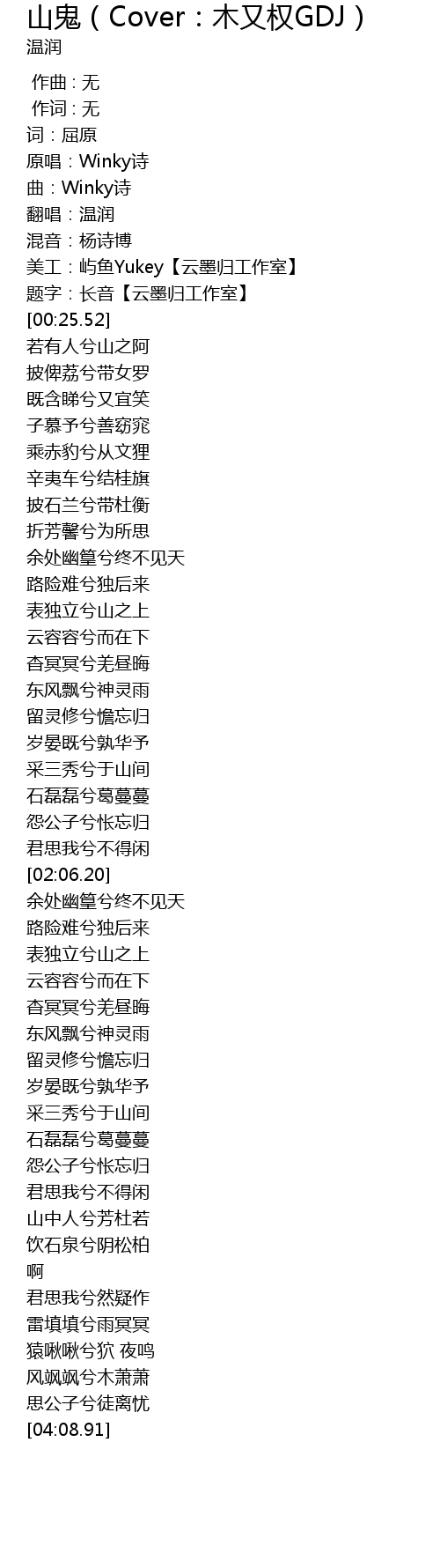 | [00:15.93] | 美工:屿鱼Yukey【云墨归工作室】 |