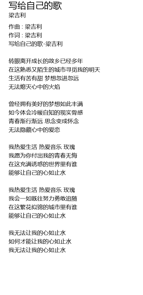 | xiě gěi zì jǐ de gē liáng jí lì | |