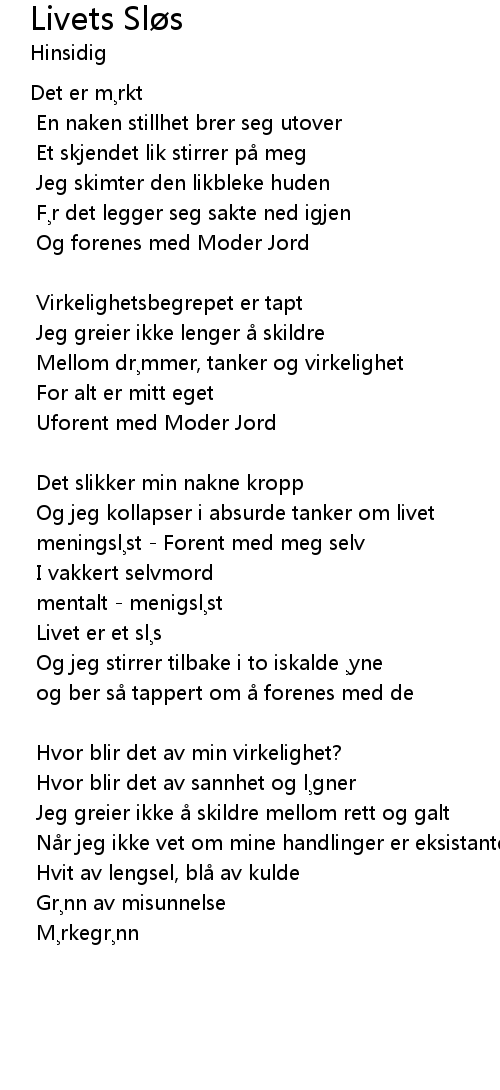 | Song | Livets Sløs |