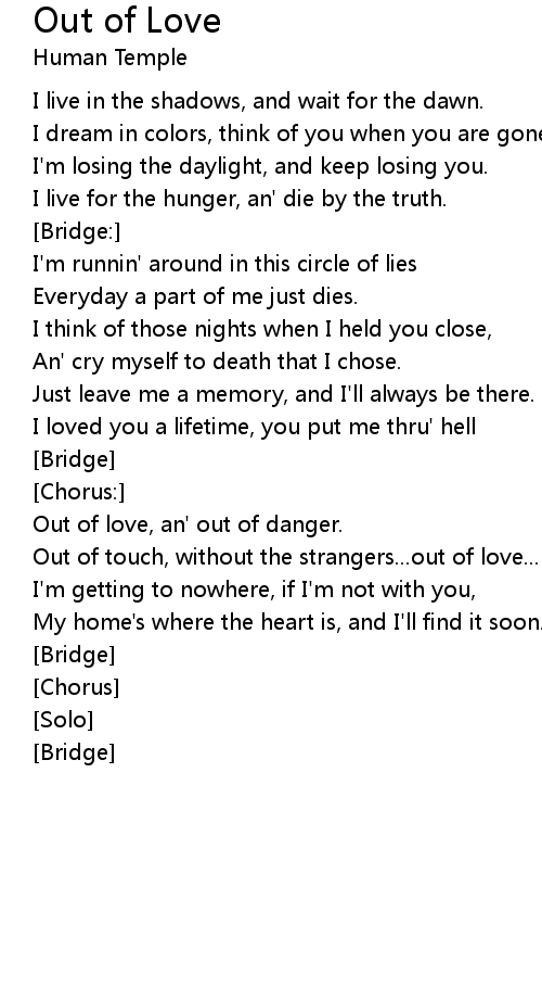 Out of touch, without the strangers...out of love... |