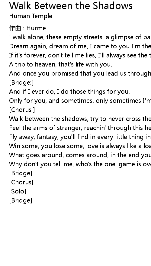 | Song | Walk Between the Shadows |