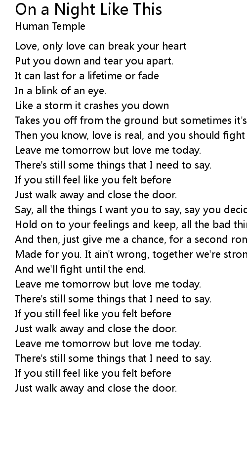 Leave me tomorrow but love me today. |