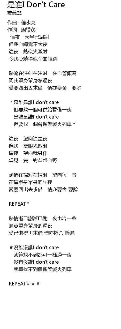 | 愛已懶得再求借 情亦懶舍 懶賒 | |