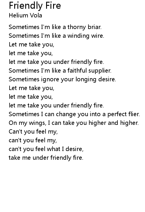 | take me under friendly fire. |