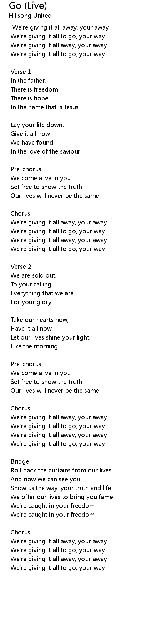 Go (Live) Lyrics