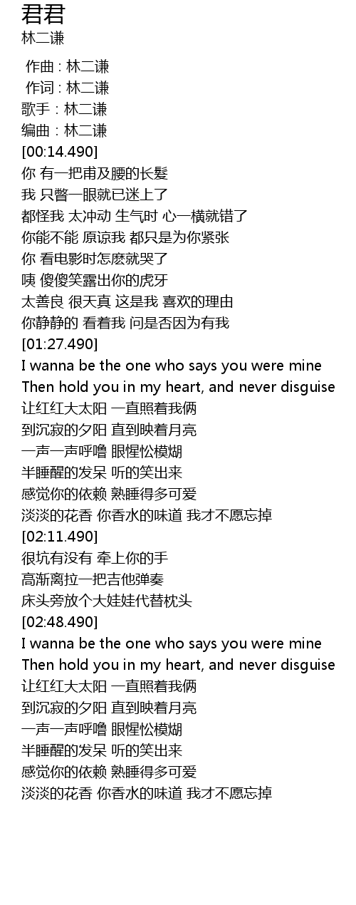 | [00:21.490] | 你 有一把甫及腰的长髮 |