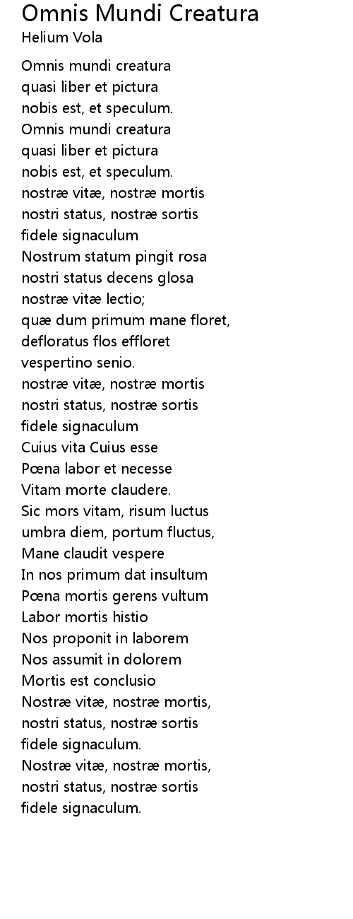 | Song | Omnis Mundi Creatura |