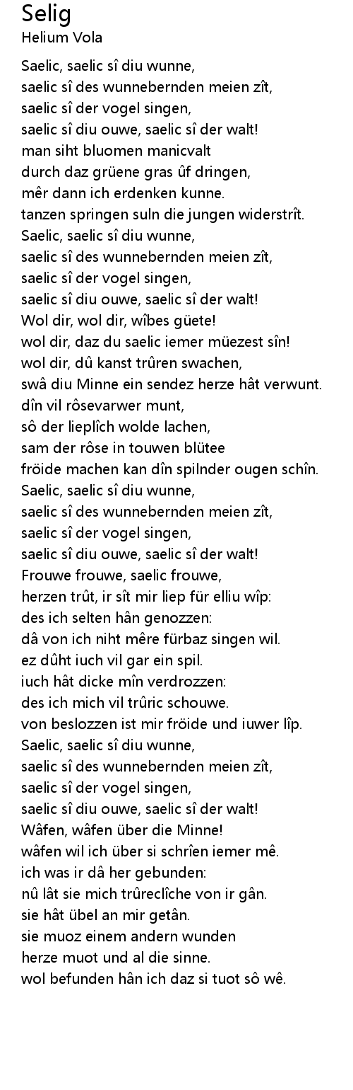 | Saelic, saelic s diu wunne, | |