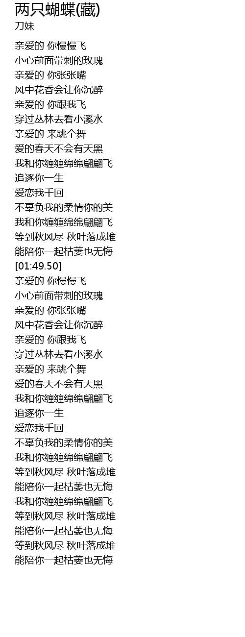 | [01:05.50] | 我和你缠缠绵绵翩翩飞 |