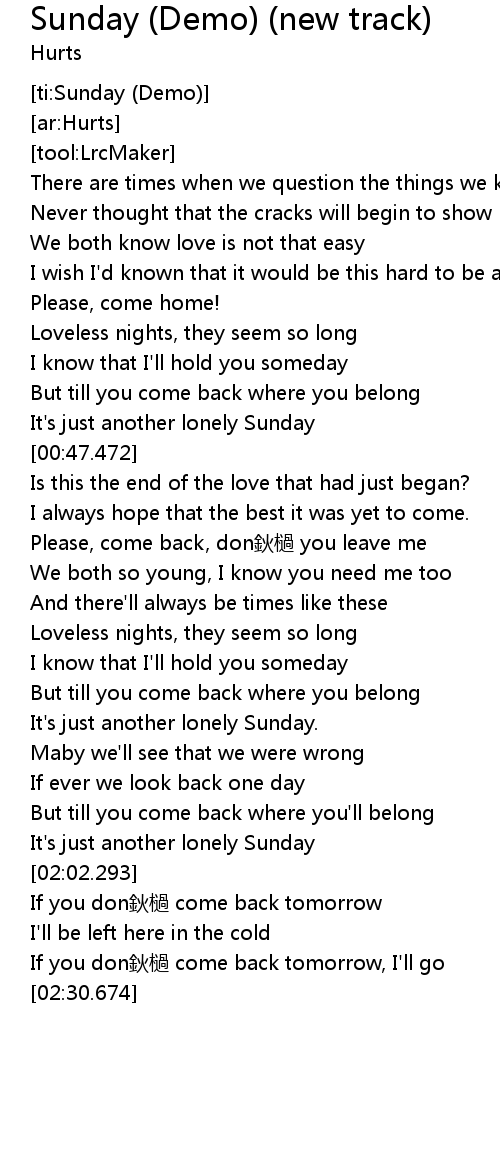 | [01:14.952] | Please, come back, don鈥檛 you leave me |