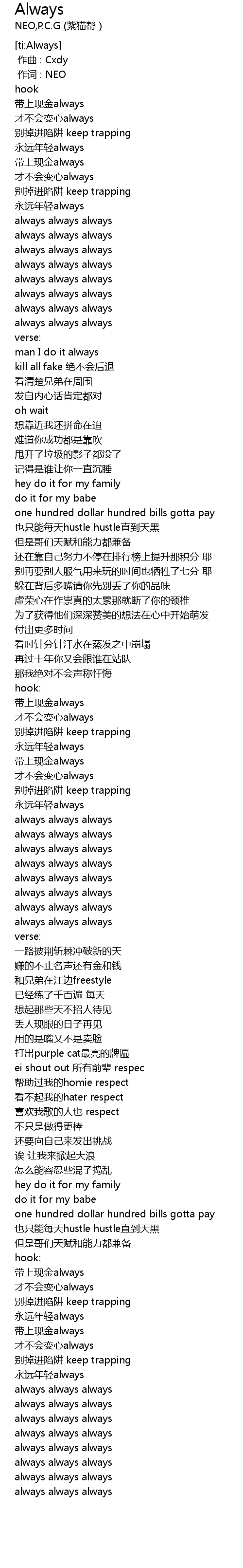 | [01:36.35] | 带上现金always |