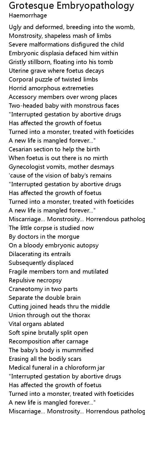 Miscarriage... Monstrosity... Horrendous pathology... |