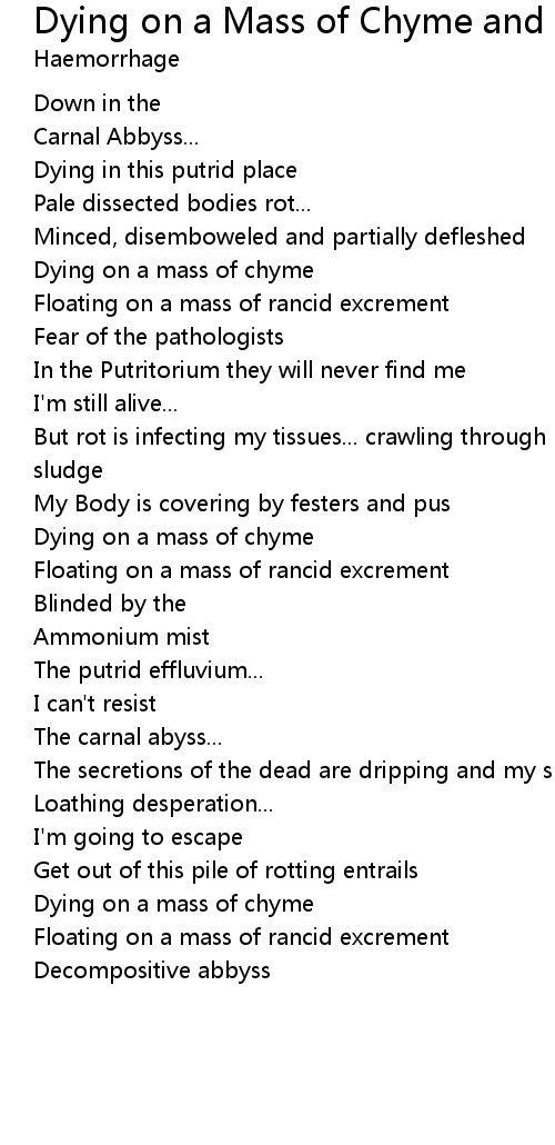 But rot is infecting my tissues... crawling through melting innards... on faecal sludge |