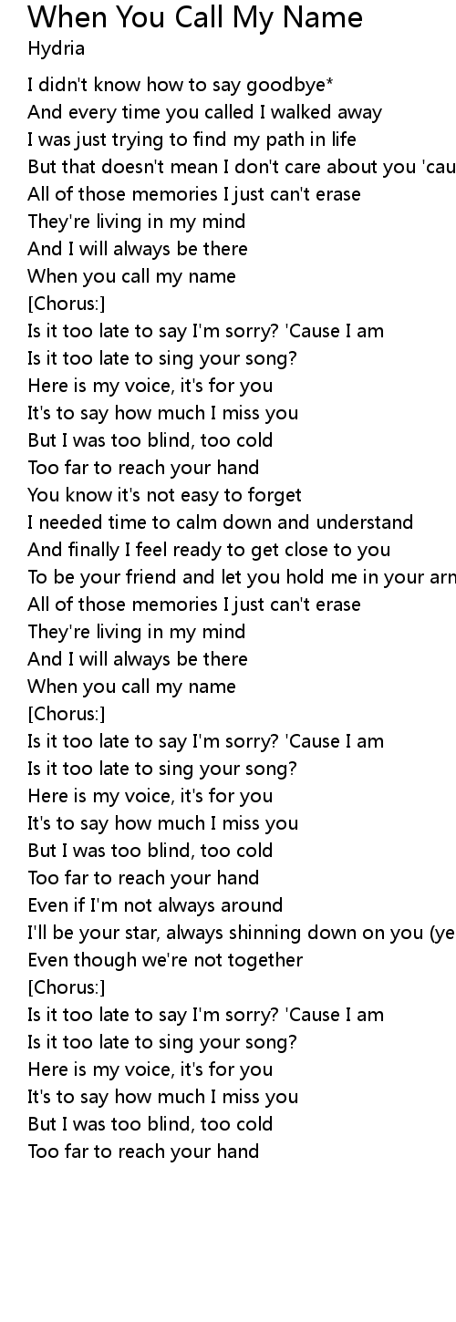 Is it too late to say I'm sorry? 'Cause I am |