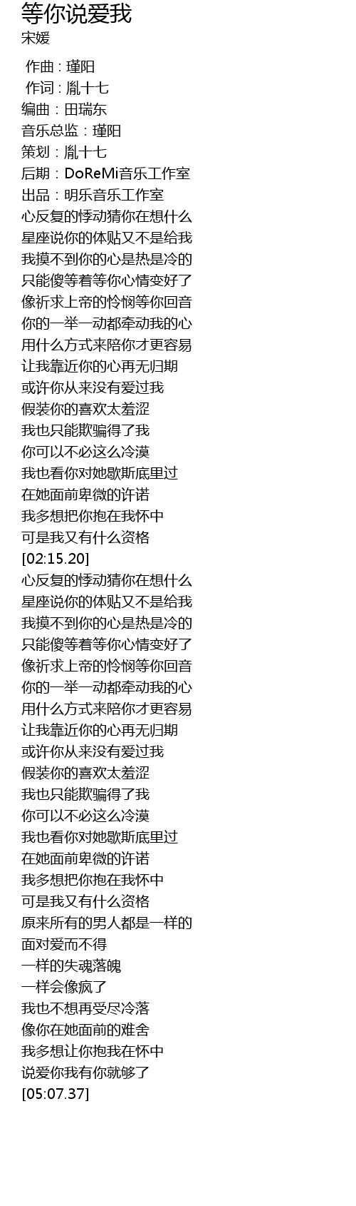 | [02:53.11] | 像祈求上帝的怜悯等你回音 |