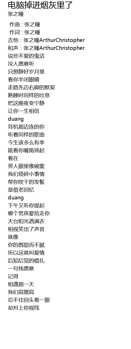 | [00:03.830] | 和声:张之瞳ArthurChristopher |