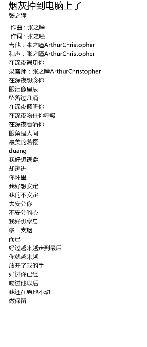 | [00:02.129] | 吉他:张之瞳ArthurChristopher |