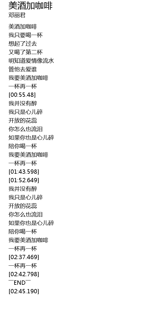 | [00:13.800] | 美酒加咖啡 |
