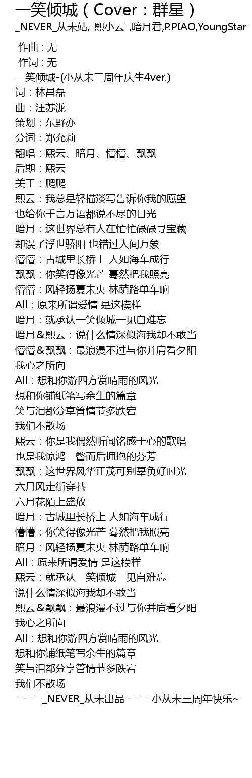 | [00:01.54] | 一笑倾城-(小从未三周年庆生4ver.) |