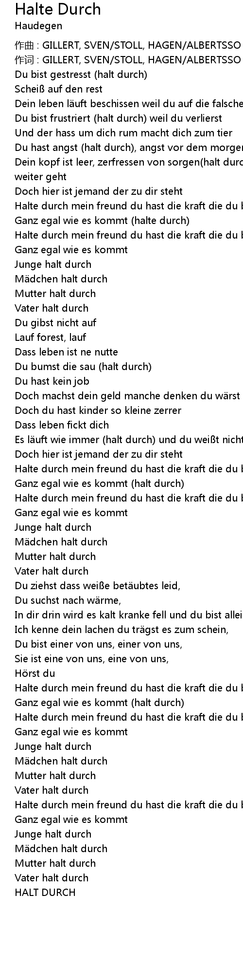 | Halte durch mein freund du hast die kraft die du brauchst | |