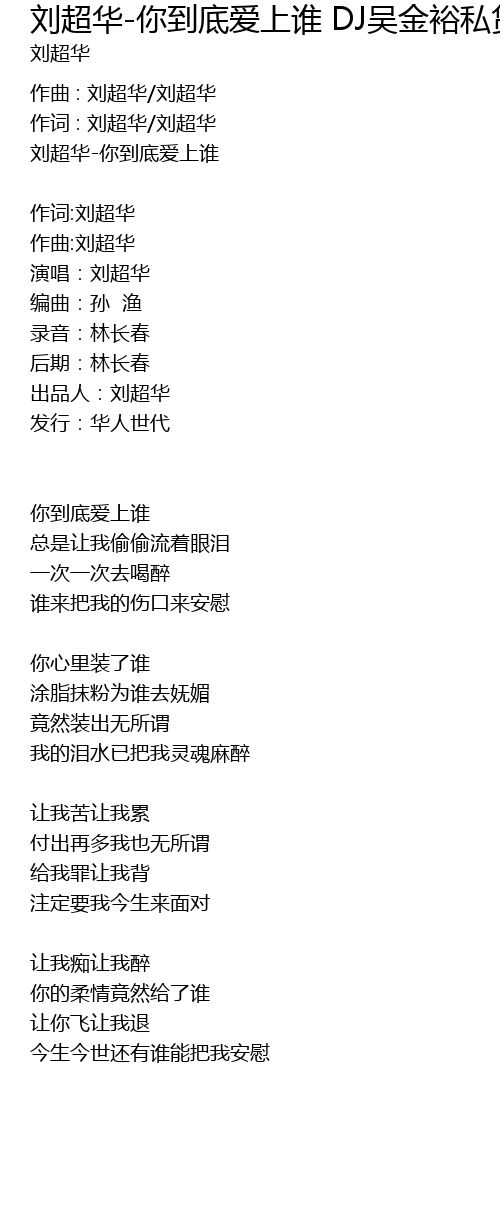 | liú chāo huá nǐ dào dǐ ài shàng shuí | |