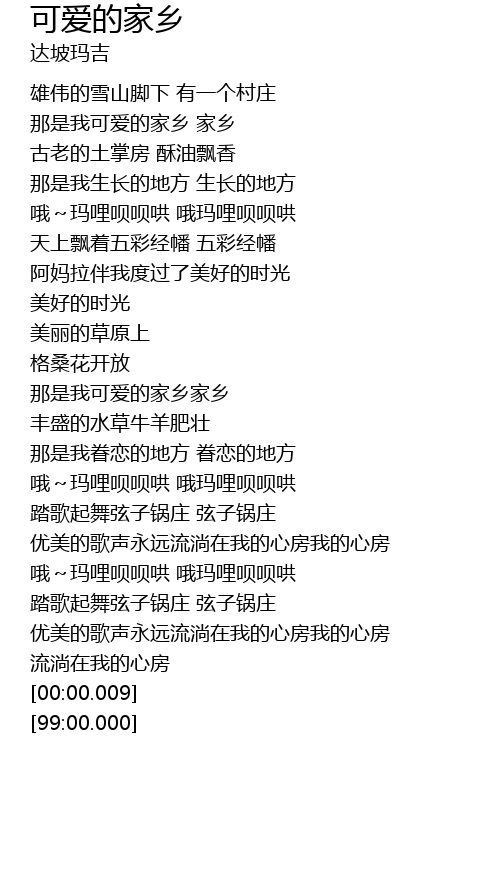 | [00:31.75] | 那是我可爱的家乡 家乡 |