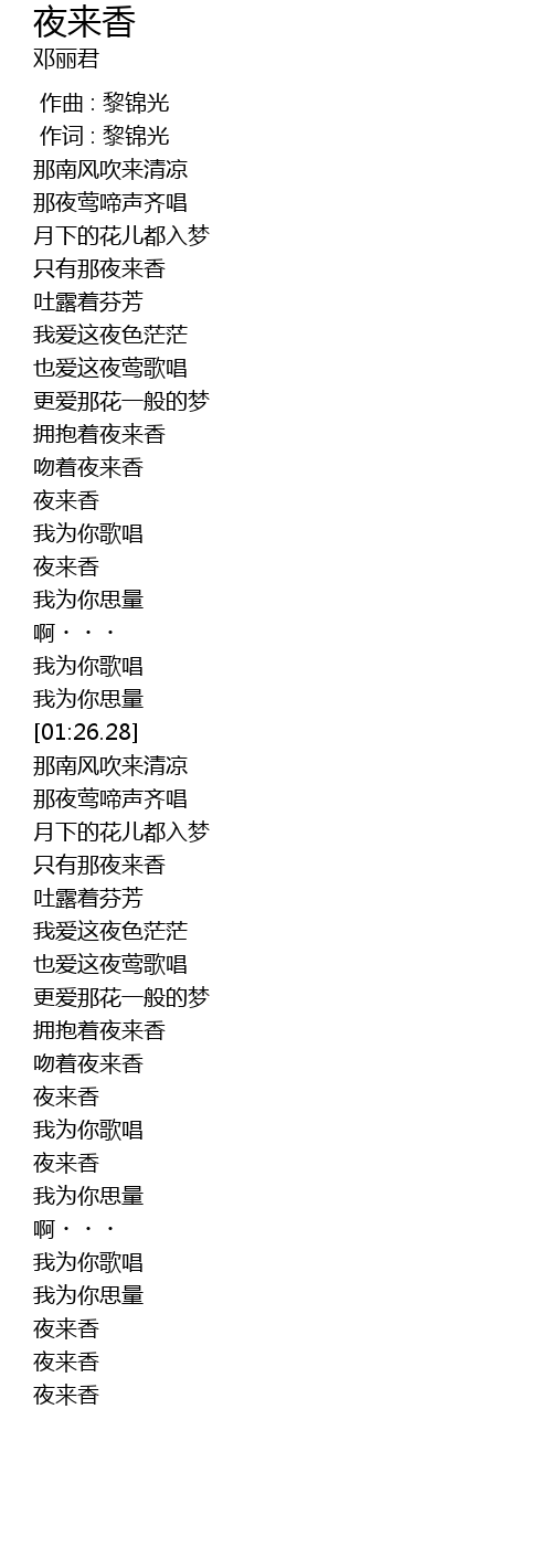 | [01:54.26] | zhǐ yǒu nà yè lái xiāng |
