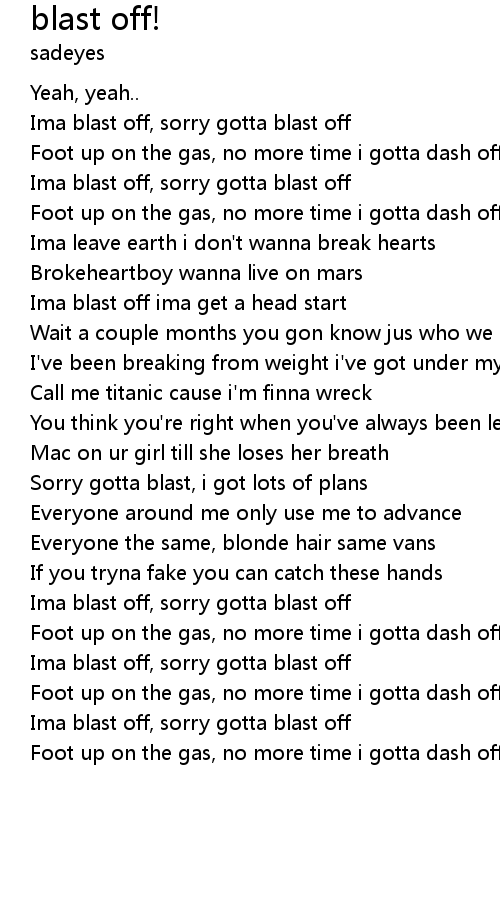 Ima blast off, sorry gotta blast off |