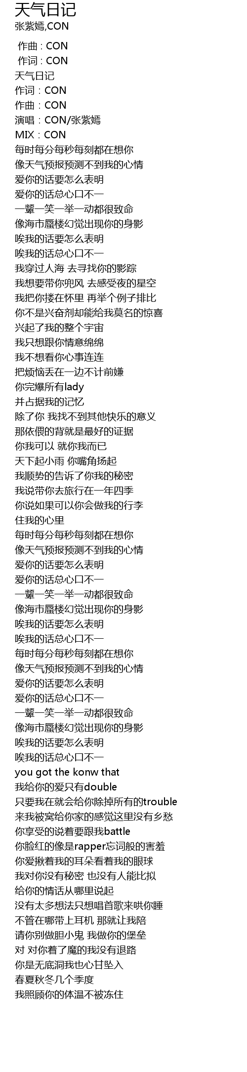 | [01:35.39] | xiang tian qi yu bao yu ce bu dao wo de xin qing |
