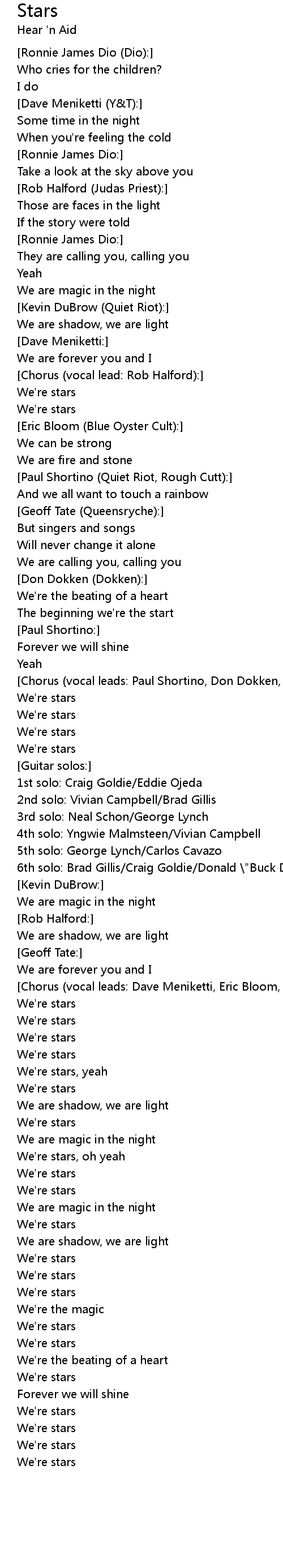 [Chorus (vocal leads: Paul Shortino, Don Dokken, Ronnie James Dio, Geoff Tate):] |