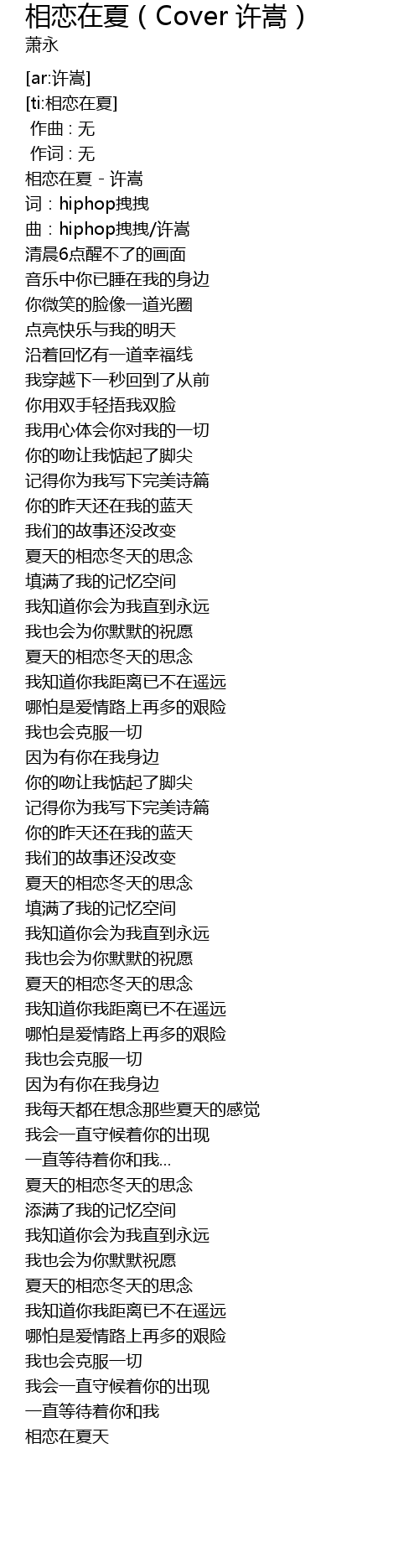 | [00:00.10] | 相恋在夏 - 许嵩 |