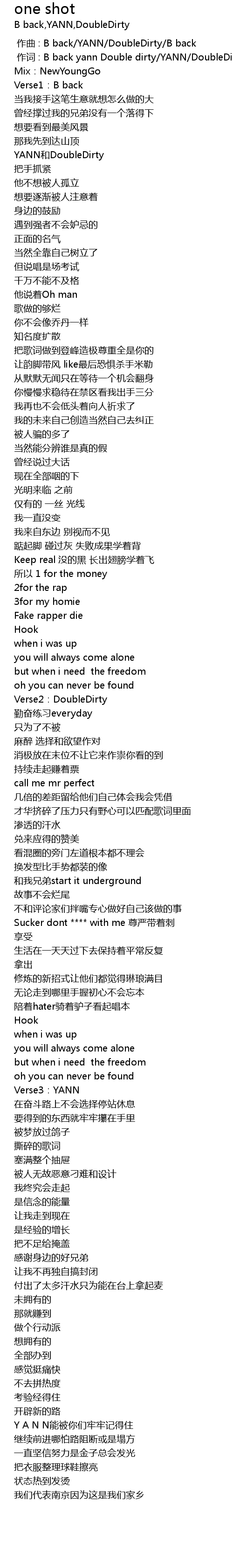 | [00:01.000] | 作词 : B back yann Double dirty/YANN/DoubleDirty/B back |