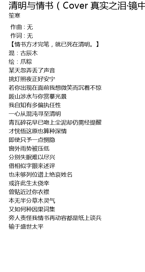 | Song | 清明与情书(Cover 真实之泪·镜中映出的你) |