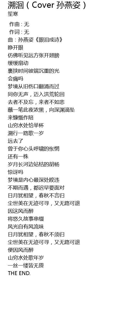 | [00:02.6] | 曲:孙燕姿《眼泪成诗》 |