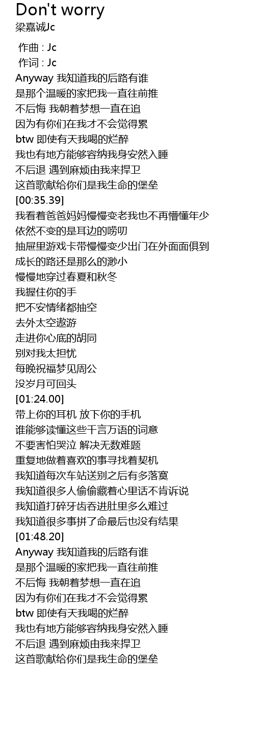 | [00:55.86] | 别对我太担忧 |