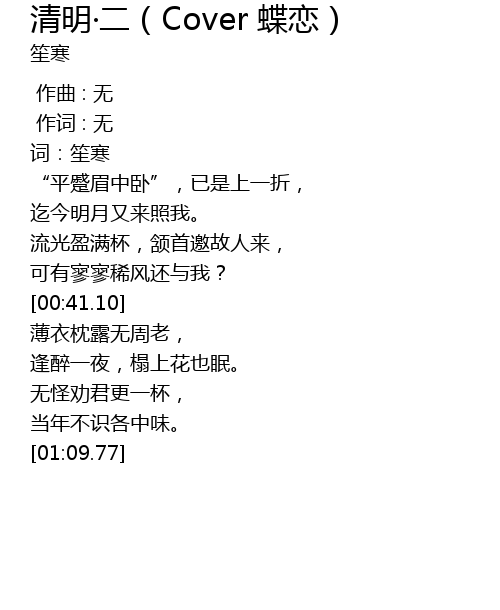 | [00:34.26] | 可有寥寥稀风还与我? |