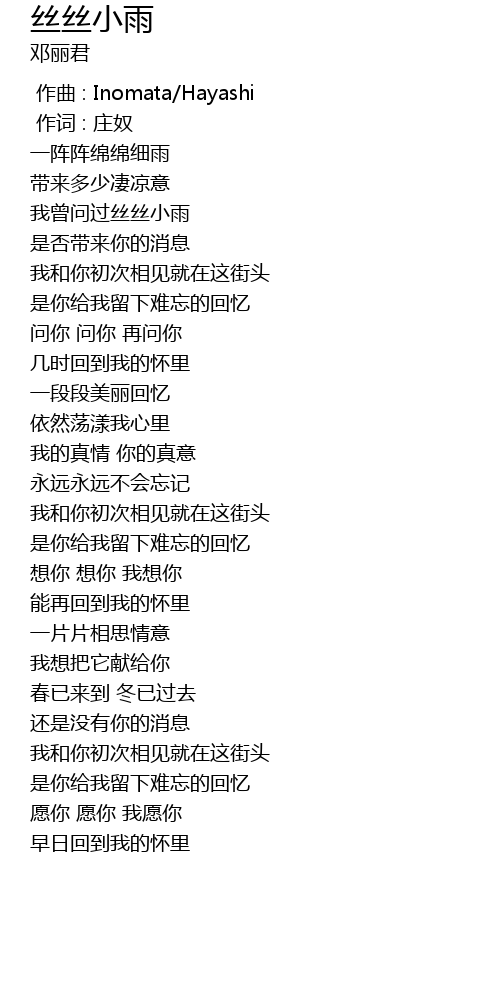| [00:35.37] | 我曾问过丝丝小雨 |