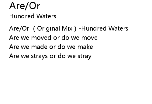 | [00:00.432] | Are Or Original Mix Hundred Waters |