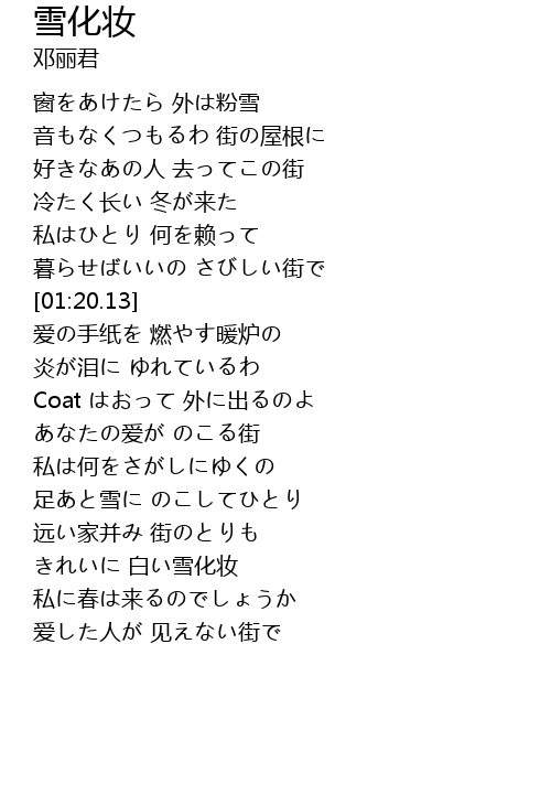 | [00:22.80] | 窗をあけたら 外は粉雪 |