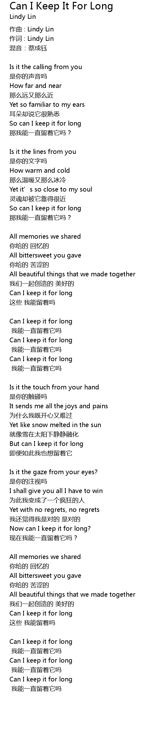 | 作词 : Lindy Lin | |