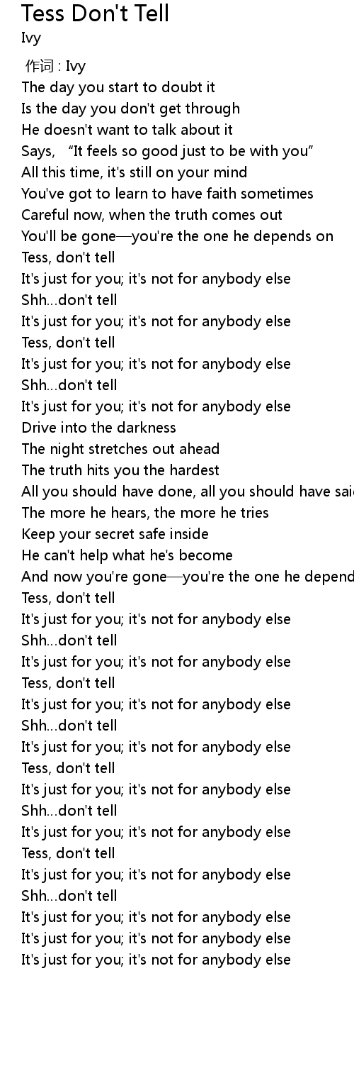 | [01:06.48] | It's just for you; it's not for anybody else |