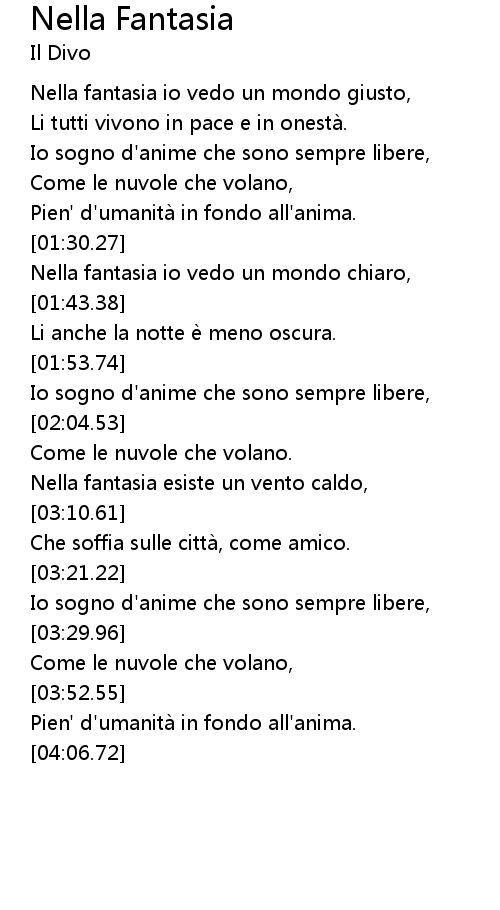 | [01:34.58] | Nella fantasia io vedo un mondo chiaro, |