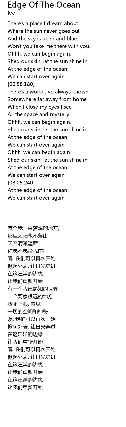 At the edge of the ocean |