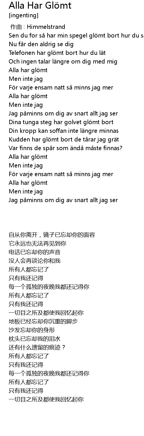 | [00:16.92] | Och ingen talar längre om dig med mig |