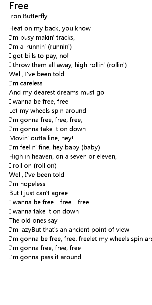 I'm gonna be free, free, freelet my wheels spin around |