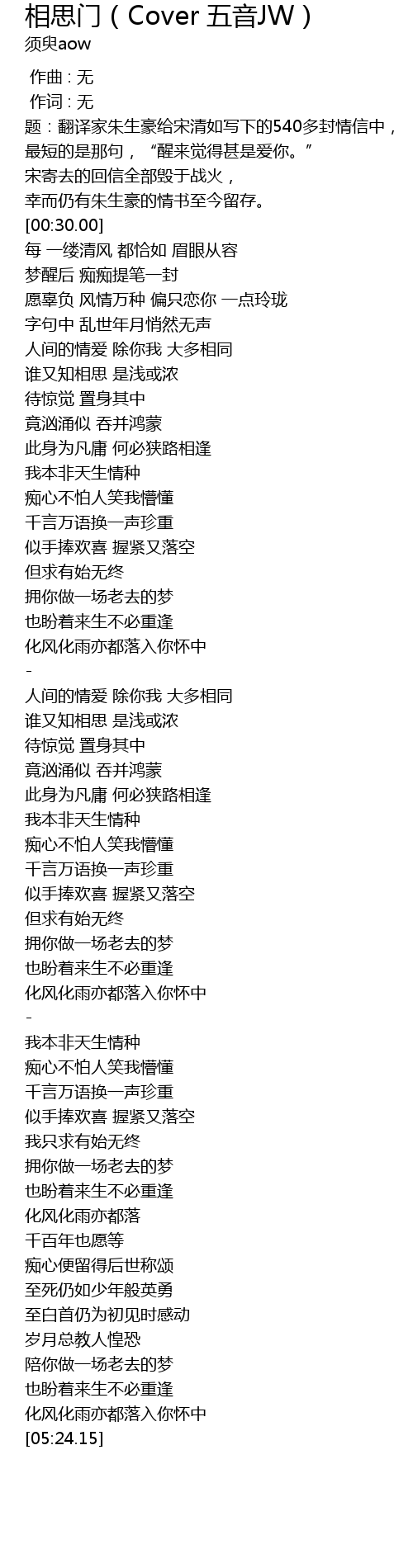 | [00:40.18] | 梦醒后 痴痴提笔一封 |