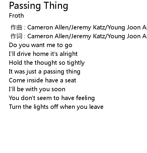 | [00:01.000] | 作词 : Cameron Allen/Jeremy Katz/Young Joon Ashworth |