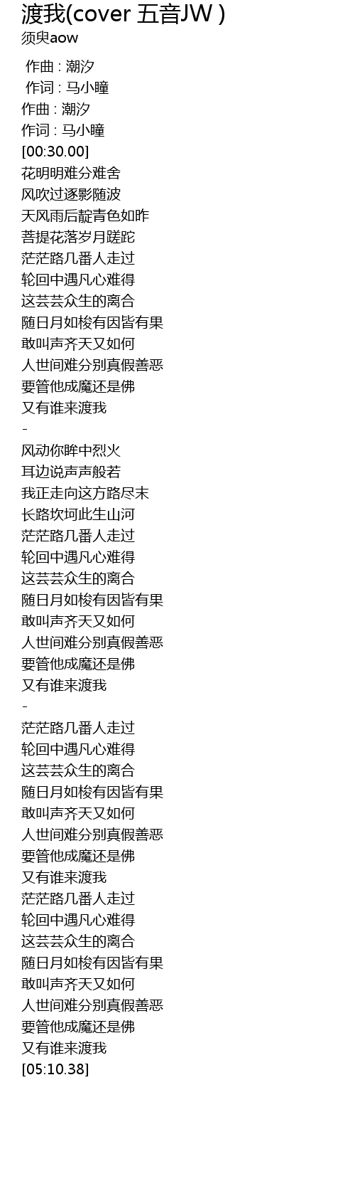 | [05:01.07] | 又有谁来渡我 |