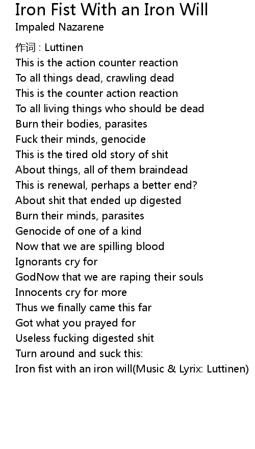 | Iron fist with an iron will Music Lyrix: Luttinen |