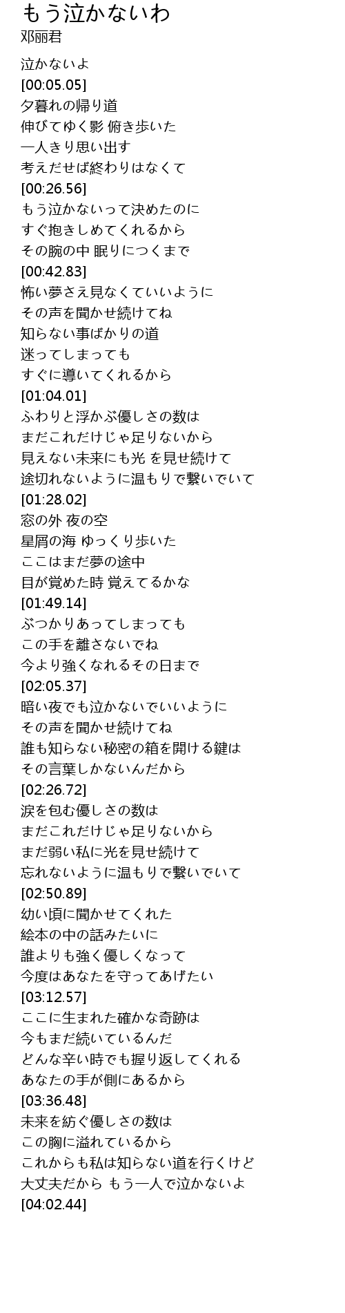 | [03:55.05] | 大丈夫だから もう一人で泣かないよ |